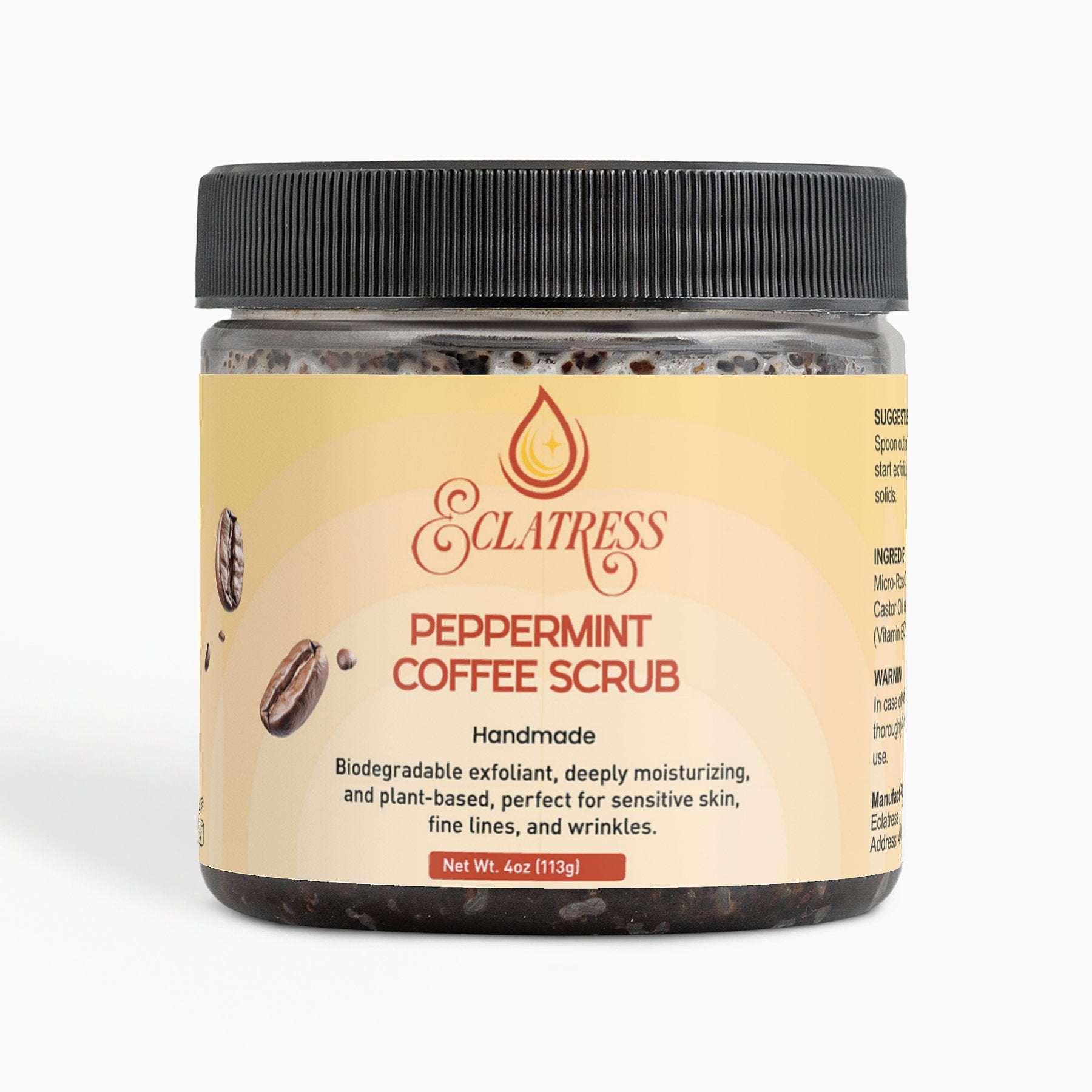 Suggested Use: Spoon out a handful of coffee scrub, apply to the skin, and start exfoliating. Use warm water to rinse off the remaining solids.